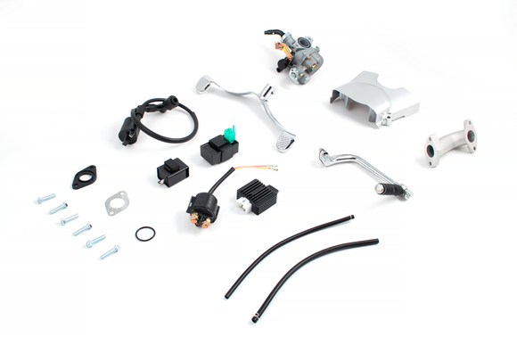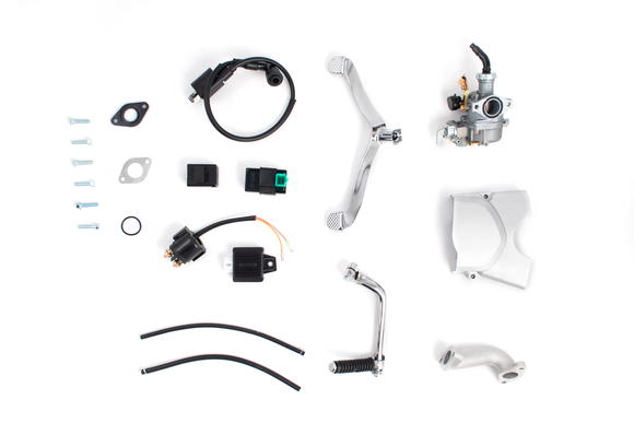 Благодаря стандартным размерам креплений, двигатель легко устанавливается на большинство питбайков.
