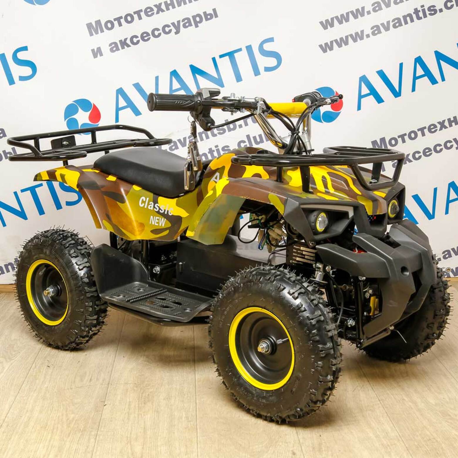 Главная ... Электроквадроциклы Детский квадроцикл ATV Classic 800w электрический Сафари (зеленожелтый камуфляж)