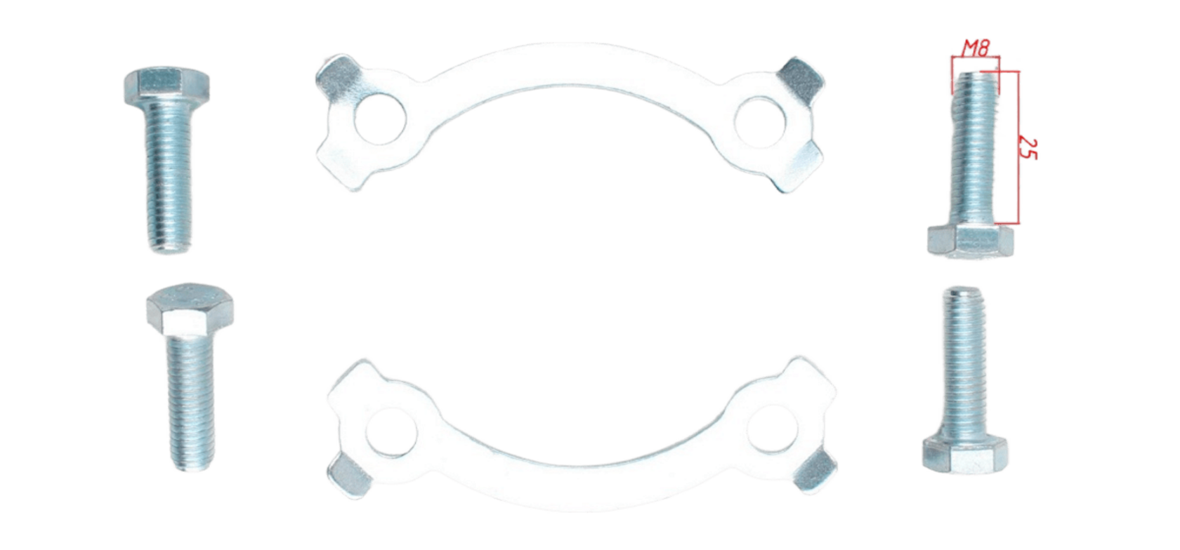 • Болты с метрической резьбой M8, длиной 25 мм — оптимальны для большинства питбайков и лёгких мотоциклов
