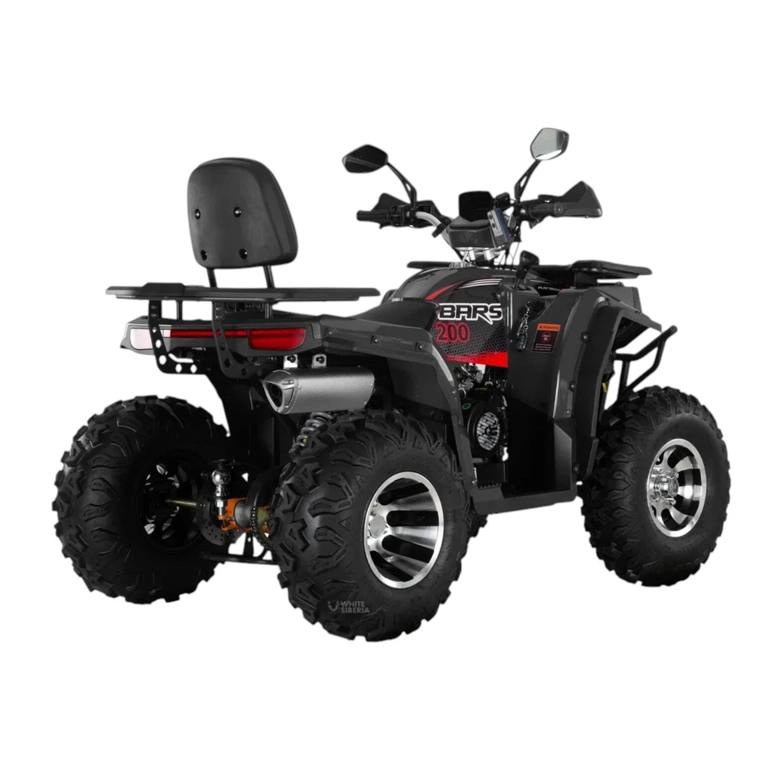 WHITE SIBERIA BARS 200CC PROНовый Бензиновый квадроцикл WHITE SIBERIA BARS 200CC PRO — выход на совершенно новый уровень качественной бензиновой техники.Бензиновый квадроцикл WHITE SIBERIA BARS 200CC PRO для подростков и взрослых.Оборудован четырехтактным двигателем с балансировочным валом, 200 кубов 17 л.с.Развивает скорость до 60 км/ч.Трансмиссия вариатор F-N-R.Новый Бензиновый квадроцикл WHITE SIBERIA BARS 200CC PRO- имеет богатое оснащение, в комплектацию PRO включены литые диски, лебедка, фаркоп, дополнительное освещение, подогрев ручек, защита рук, USB разъем, спинка для пассажиров, поворотники и зеркала заднего вида, спидометр, датчик уровня топлива.Бензиновый квадроцикл WHITE SIBERIA BARS 200CC PRO-это полноценный квадроцикл от WHITE SIBERIA со всеми необходимыми функциями для активного отдыха на природе в любое время года и при любой погоде.