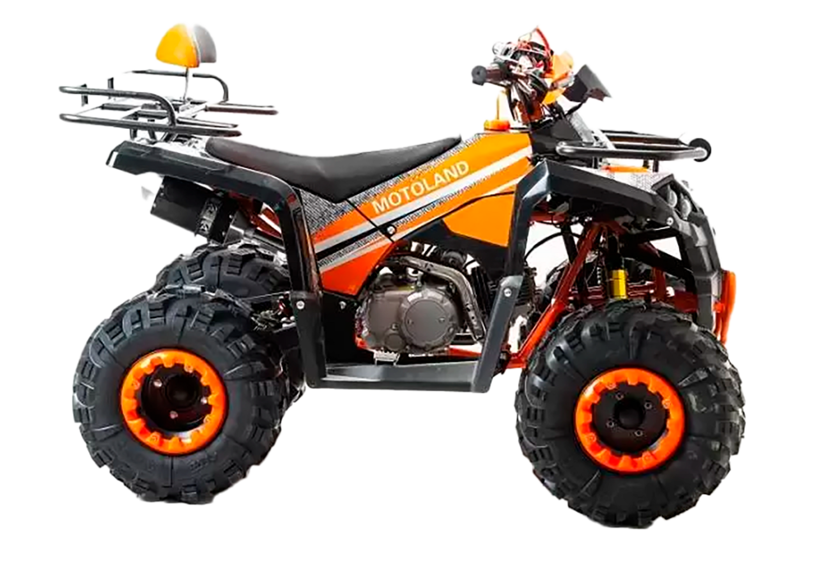 Производитель квадроциклов MotoLand Raptor 125 является новинкой на рынке детских и подростковых квадроциклов 2019 года. Подходит для использования от 5–6 лет и до 11–13, но выдержит и взрослого наездника спортивной комплекции. Комплектуется колесами R8, электростартером, вариатором с задним ходом, карбюратором Keikhin, дисковым передним тормозом, чекой безопасности и защитой рук.