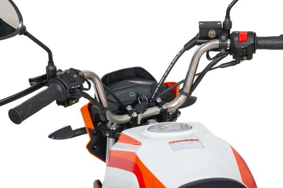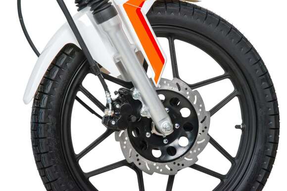 Мопед полностью отвечает требованиям к безопасному движению по городу и за городом: оснащен фарой дальнего и ближнего света, поворотниками, стоп-сигналом, звуковым сигналом, зеркалами заднего вида, габаритными светоотражателями.