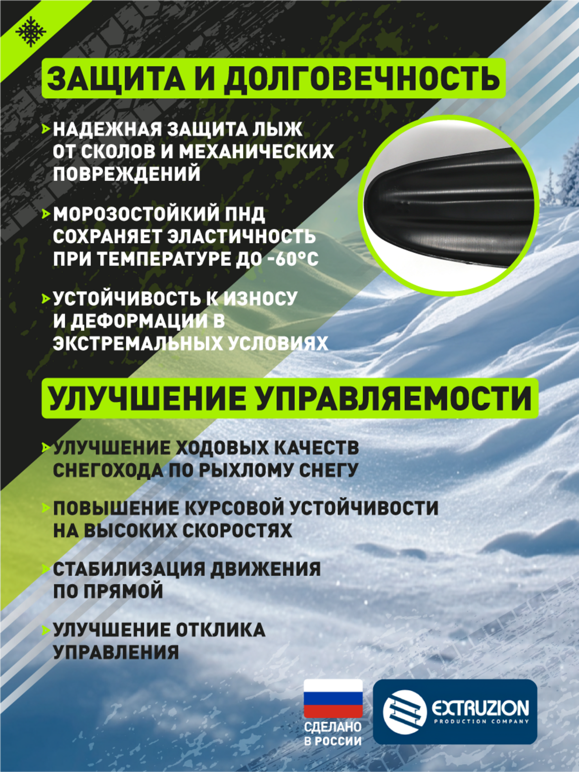 • • Улучшение управляемости на рыхлом снегу