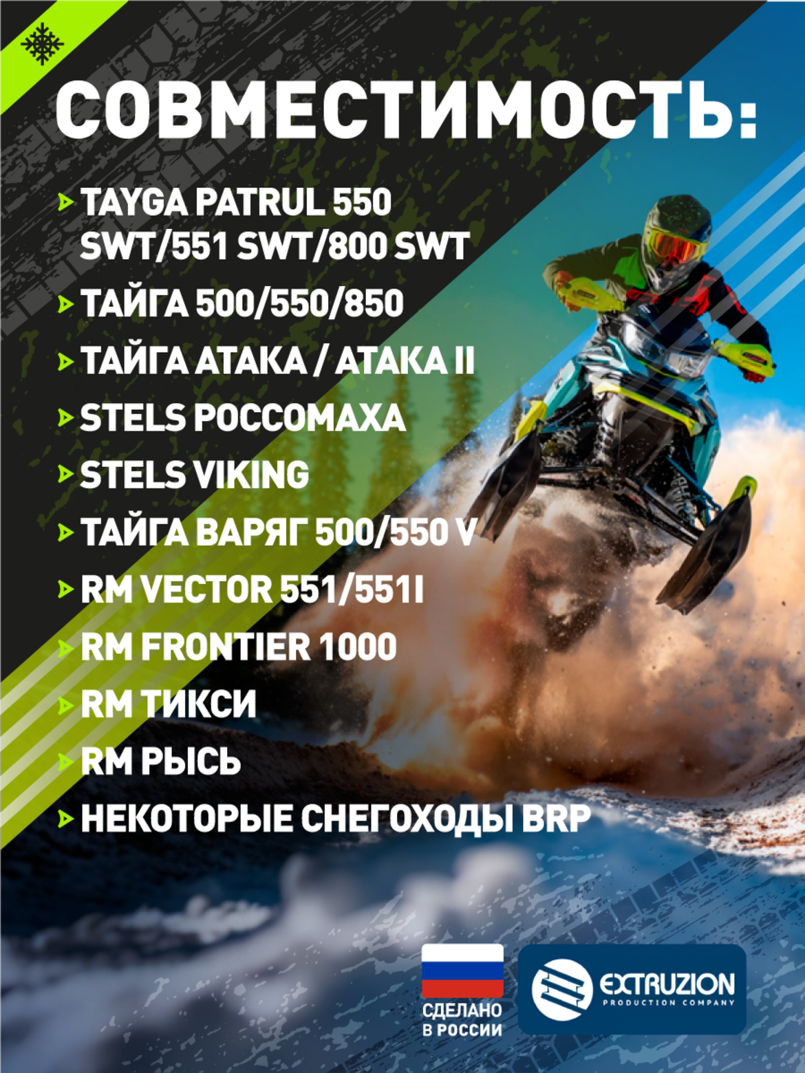 • • Универсальность применения для различных моделей снегоходов