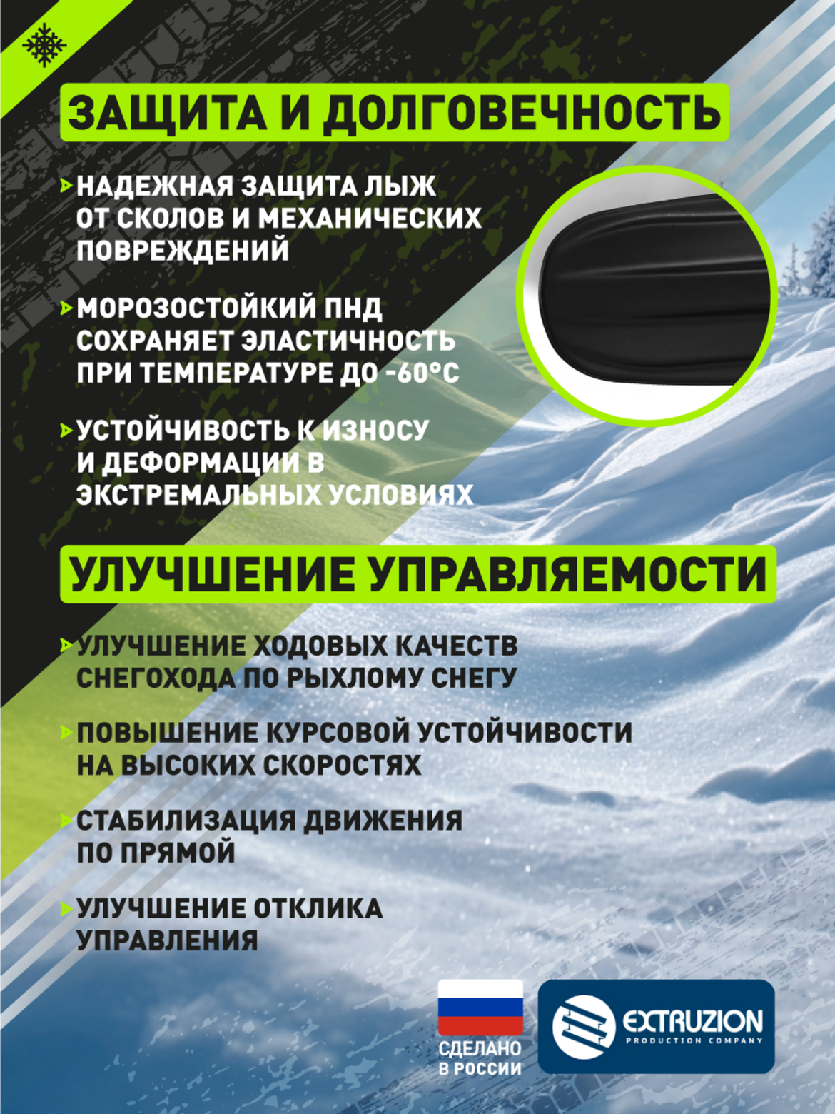 • • Прямая установка на штатные лыжи без дополнительных доработок