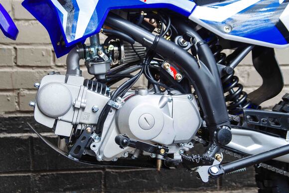 TTR 125R — новое поколение популярного питбайка IRBIS TTR 125 с усовершенствованным 125-кубовым 4-тактным двигателем. По сравнению с предыдущей генерацией, TTR 125R приобрел ряд новых опций: электростартер, удобную приборную панель, усиленные стойки, защитный кожух заднего амортизатора и более мощную фару головного света. Современный дизайн TTR 125R не оставит равнодушным сердце истинного покорителя бездорожья.Питбайк позволяет экономить на топливе, расход составляет всего 2 литра на 100 километров. Мощность этого компактного мотоцикла — 8,2 л.с., он способен развивать скорость до 100 км/ч. На обоих колесах применены дисковые тормоза и используются внедорожные шины. На модель установлена телескопическая вилка перевернутого типа, что существенно увеличивает ее рабочий ход.Не важно — отправились ли вы на поиски приключений в лес или катаетесь по грунтовым дорогам в деревне, вы получите незабываемое удовольствие от вождения.TTR 125R просто создан для покорения бездорожья!