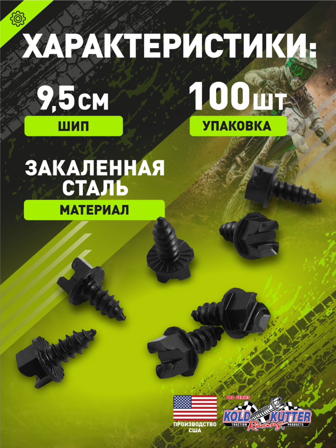 • Шип для эндуро мотоцикла вкручивающийся 100 шт. KOLD KUTTER 3/8" (9,5 мм)