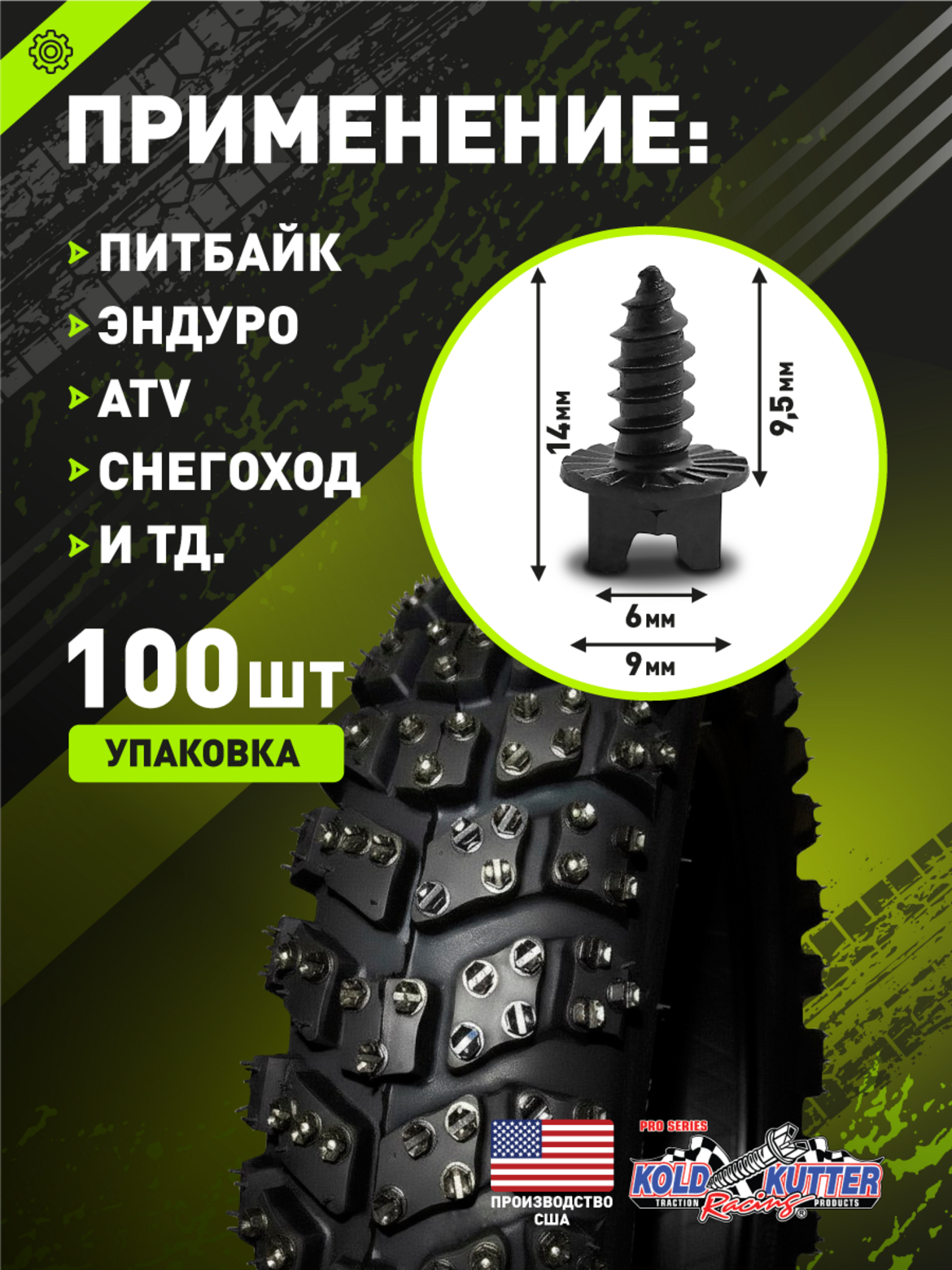 Шип для эндуро мотоцикла вкручивающийся 100 шт.KOLD KUTTER 3/8" (9,5 мм)
