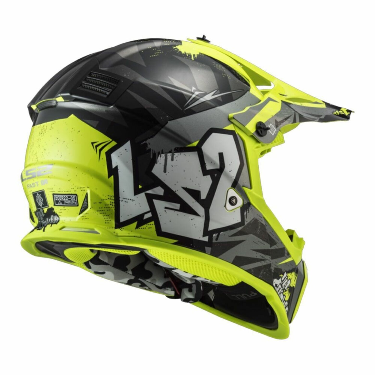 Шлем LS2 MX437 FAST EVO MINI CRUSHER Black Hi-Vis Yellow M
