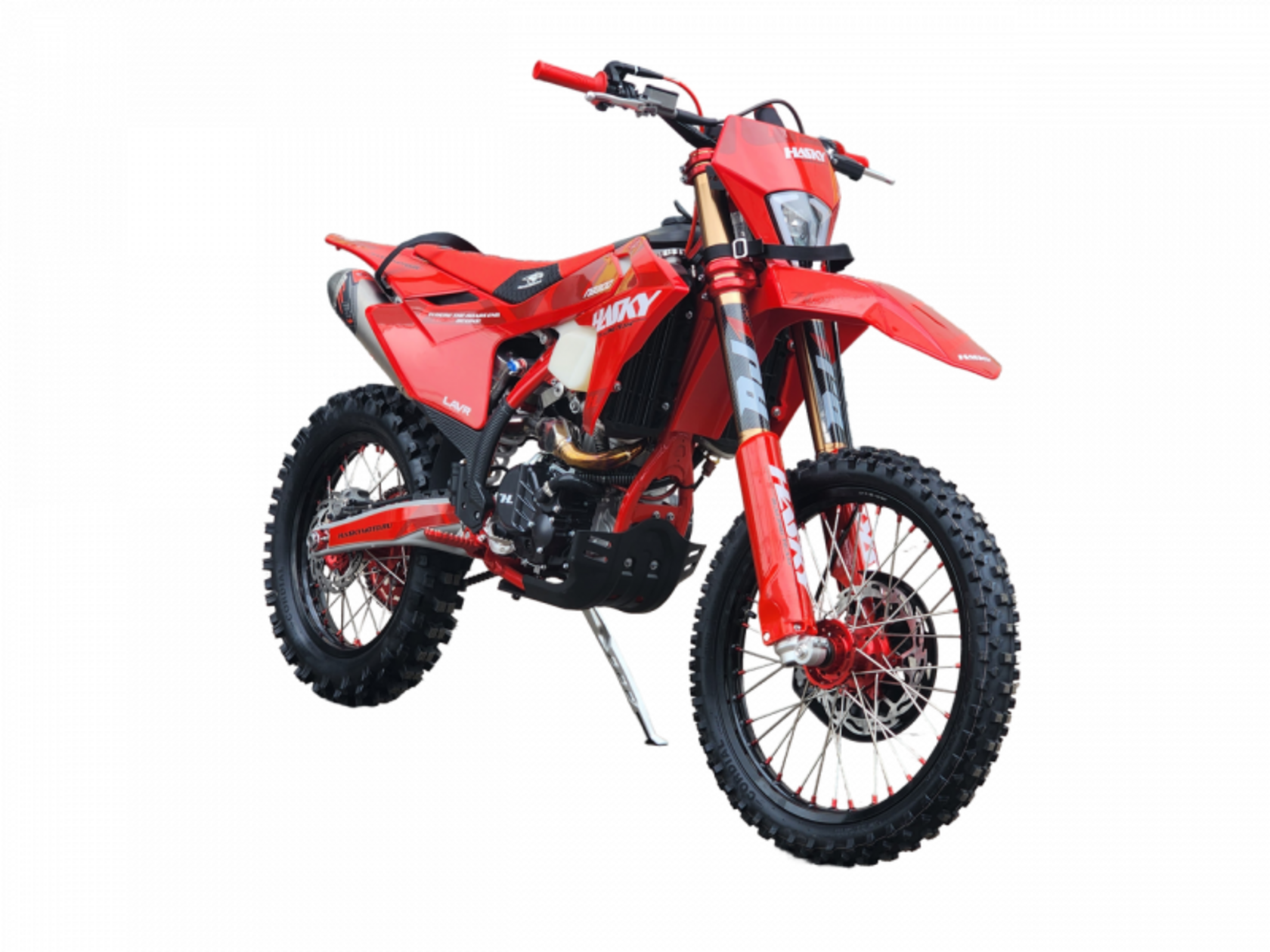 Hasky A10 Pro NB300 2025 — это флагманский эндуро-мотоцикл нового поколения, созданный с упором на максимальную надёжность, проходимость и гоночные характеристики. Эта полноразмерная модель на базе колёс 21/18 разработана для райдеров, которым нужна топовая техника без компромиссов.В сердце байка — мощный двигатель ZS174MN-5A NB300 объёмом 300 см³ с балансирным валом, обеспечивающий мягкую работу и эффективную тягу на всём диапазоне оборотов. Он работает в паре с шестиступенчатой коробкой передач и запускается электростартером. За идеальную топливную смесь отвечает карбюратор NIBBI PWK34 RACING, который уверенно раскрывает весь потенциал двигателя даже в экстремальных условиях.Основой конструкции служит новая рама A10, спроектированная с учётом высоких нагрузок и агрессивной езды. Подвеска — один из главных козырей модели: вилка HTW T10 с 48 мм перьями закрытого картриджа с полными регулировками, а также задний амортизатор AJ1 на японских комплектующих позволяют точно настраивать мотоцикл под любой стиль катания. Конструкция без прогрессии обеспечивает прямую обратную связь от трассы.Пластик выполнен в стиле GASGAS 2024 года, что подчёркивает спортивный характер байка. Выхлопная система с титановой трубой глушителя снижает вес и улучшает терморежим. Руль из алюминиевого сплава 7075 усиленного типа, новые широкие пеги AJ1, грипсы AJ1 Lock On и антискользящее сиденье AJ1 обеспечивают комфорт и полный контроль в любой ситуации.На мотоцикле установлены усиленные алюминиевые обода 7050 серии с фрезерованными ступицами, толстые камеры со стенкой 3 мм и фиксатор покрышки AJ1. Покрышки Cordial на обоих колёсах обеспечивают уверенное сцепление с любым покрытием.Тормозная система AJ1, выполненная по образцу Brembo, даёт максимальное замедление и стабильную работу даже при перегреве. Установлены TORKs-крепежи, а также фирменные элементы от NIBBI: ручка газа, тросы газа и сцепления. Защищённость байка продумана до мелочей: влагозащищённая проводка, воздушный фильтр увеличенной площади из негорючего материала, защита двигателя, перьев, радиатора, тормозного диска и рамы, буксировочные стропы спереди и сзади, а также мощная светодиодная фара с 4 линзами.Hasky A10 Pro NB300 2025 — это топовый эндуро-байк для тех, кто требует максимум от своей техники: максимальной отдачи, управляемости, контроля и выносливости.