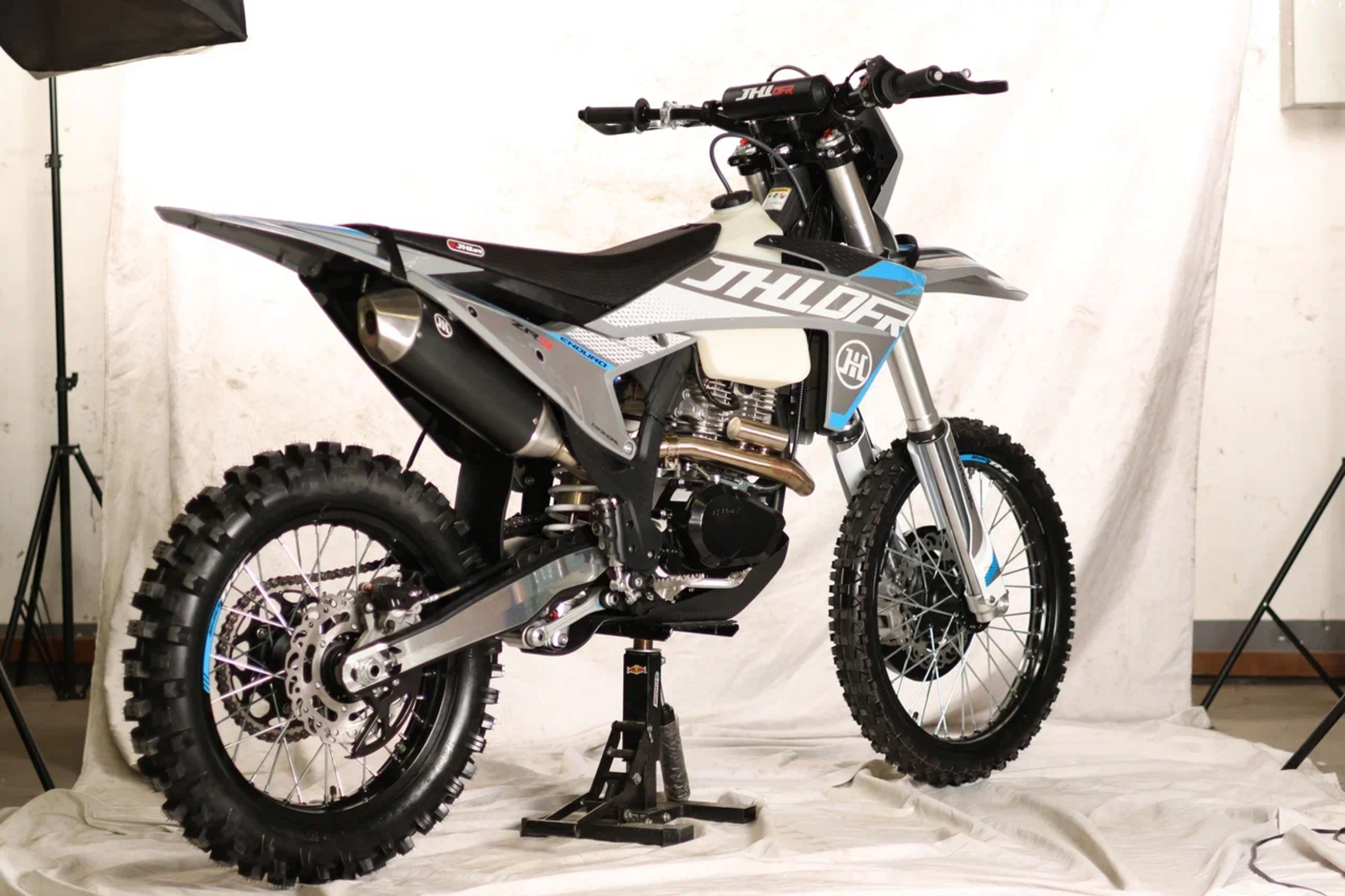 JHLmoto – создан профессиональными мотоциклистами, участвующими в соревнованиях по всему миру! Благодаря этому каждая модель сочетает в себе идеальный баланс мощности в веса в зависимости от своего класса. JHLmoto работает с лучшими производителями комплектующих, такими как KKE, ANJIE, CNC, Unison и уверены в своих мотоциклах на 100%! Убедитесь и вы! Рама и подвескаРама мотоциклов проекта K8 – самая надежнейшая рама в мире эндуро и кросс, выполнена из хромолибденовой стали, покрыта раптором! Максимальный запас прочности и защиты от коррозии! Держит раму на себе подвеска перевернутого типа спереди и моноамортизатор сзади от KKE, с возможностью тончайшей настройки для ваших задач и целей! В таком сочетании люфты подвески отсутствуют – при резком страгивании с места мотоцикл не рыщет, стоит ровно, уверенно! Свет и электроникаГоловная фара с пятью светодиодными линзами светит очень ярко и позволяет продолжить покатушки, либо просто вернуться домой в темное время суток. Приборная панель ЖК отображает всю текущую информацию о состоянии мотоцикла. Вся электроника имеет влагозащищенные разъемы, которые абсолютно исключают попадание воды и образование коррозии! Питает электронику аккумулятор, Li-ion, общим весом 200 грамм!!! Двигатель и карбюраторJHLmoto использует только проверенные временем двигатели от Zongsheng в своих моделях – самого крупного завода по производству двигателей, которые питаются от карбюраторов Nibbi Racing, самых конкурентных карбюраторов в мире кросс и эндуро мотоциклов! Так же в линейке мотоциклов JHL есть версии на инжеторе – за впрыск отвечает EFI Bosch, самый лучший EFI! Фильтрацию воздуха обеспечивает система Nibbi Racing. Колеса и тормозаКолесные диски JHLmoto использует только бренда Unison – это алюминево-кремневые диски, максимально легкие и прочные! Резина на дисках в зависимости от характера мотоцикла – KENDA/Cordial. Буксаторы уже утановлены и они композитные – для уменьшения веса. Останавливают их тормозные вентилируемые диски KTM с тормозной системой ANJIE, все это закрыто кожухами от PRO CAKEN.