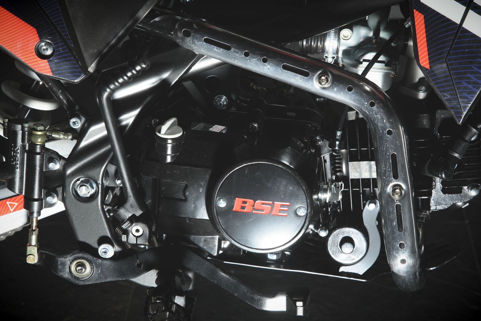 Питбайк BSE PH125 на колесах 17/14 дюймов – один из самых популярных, надежных и продаваемых питбайков 125 куб см среди китайских производителей! Этот классический питбайк объёмом 125 см3 обладает рядом модификаций и полезных усовершенствований, которые дополняют его функционал и отличают от конкурентов. PH125 оснащен колесами классическим для питбайка размером колес 17/14. Основа PH125 - рама из хромомолибденовой стали повышенной жесткости с литыми усилителями - фирменный знак качества завода BOSUER! Cиловая установка питбайка – надежный, тяговитый и мощный 4-тактный двигатель Zonghshen 125 куб см с воздушным охлаждением и мощностью 10 лс. Питает мотор карбюратор Jingke PZ 26. Питбайк оснащен 4-ступенчатой механической трансмиссией. Запуск мотора осуществляется при помощи электростартера или кик-стартера. Подвески с большими ходами: передняя - телескопическая вилка перевёрнуто типа, задняя- моноамортизатор. "Злая" резина, Мощная тормозная система HSK Racing, японские колесные подшипники NTN, усиленная цепь 428 Gold, защита мотора - питбайк полностью укомплектован всем необходимым для покатушек и гонок.