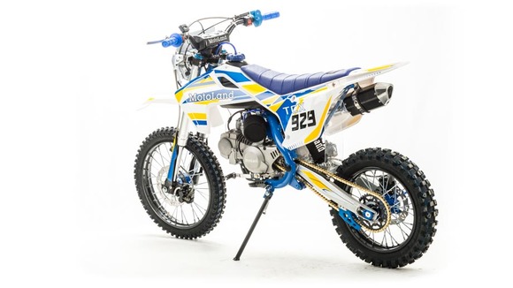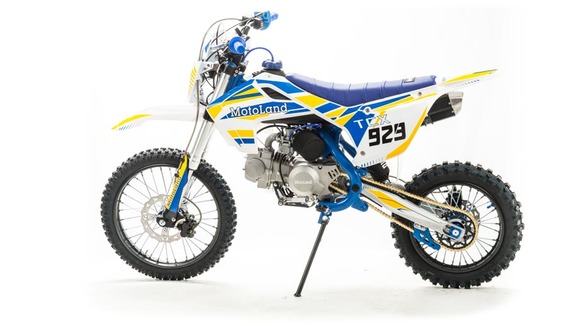Питбайк Motoland TCX125 идеален для поездок по грунтовым дорогам и бездорожью. Хорошо чувствует себя на мягком и среднем грунте, разгоняется до 90 км/ч. Оснащён спортивными траверсами, весит всего 75 кг.Питбайк прост в управлении и не требует специального ухода, подойдёт как новичкам, так и любителям мотокросса.У питбайка отличный узнаваемый дизайн. Конструкция подчёркивает неуступчивый спортивный характер, который не остановится ни перед одним препятствием.Комбинированный прочный пластик не ломается при сгибании.Передняя подвеска — телескопическая вилка перевёрнутого типа, которая отлично подходит для преодоления ям, и других неровностей плохих дорог или их отсутствия. Задняя подвеска маятниковая с моноамортизатором.Питбайк оснащён карбюратором с фильтром нулевого сопротивления Nibbi PE n19 и одноцилиндровым четырёхтактным двигателем с воздушным охлаждением. Надёжный мотор 153FMI мощностью 8 л. с. и объемом 125 см³ , установленный на усиленной стальной раме, коробка передач механическая, четырёхступенчатая.Тормоза дисковые, передний тормозной суппорт двухпоршневой, задний — однопоршневой.Питбайк относится к недорогим моделям, которые при должной эксплуатации работают без сбоев. Не занимает много места в гараже. При необходимости в нём легко сменить любую повреждённую деталь.